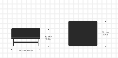 Mål: H:40 cm, D:90 cm, L:80 cm, Seat:40 cm.
