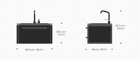 Mål: 67 x 38 x 46 cm. Cutout Ø: 35 mm.