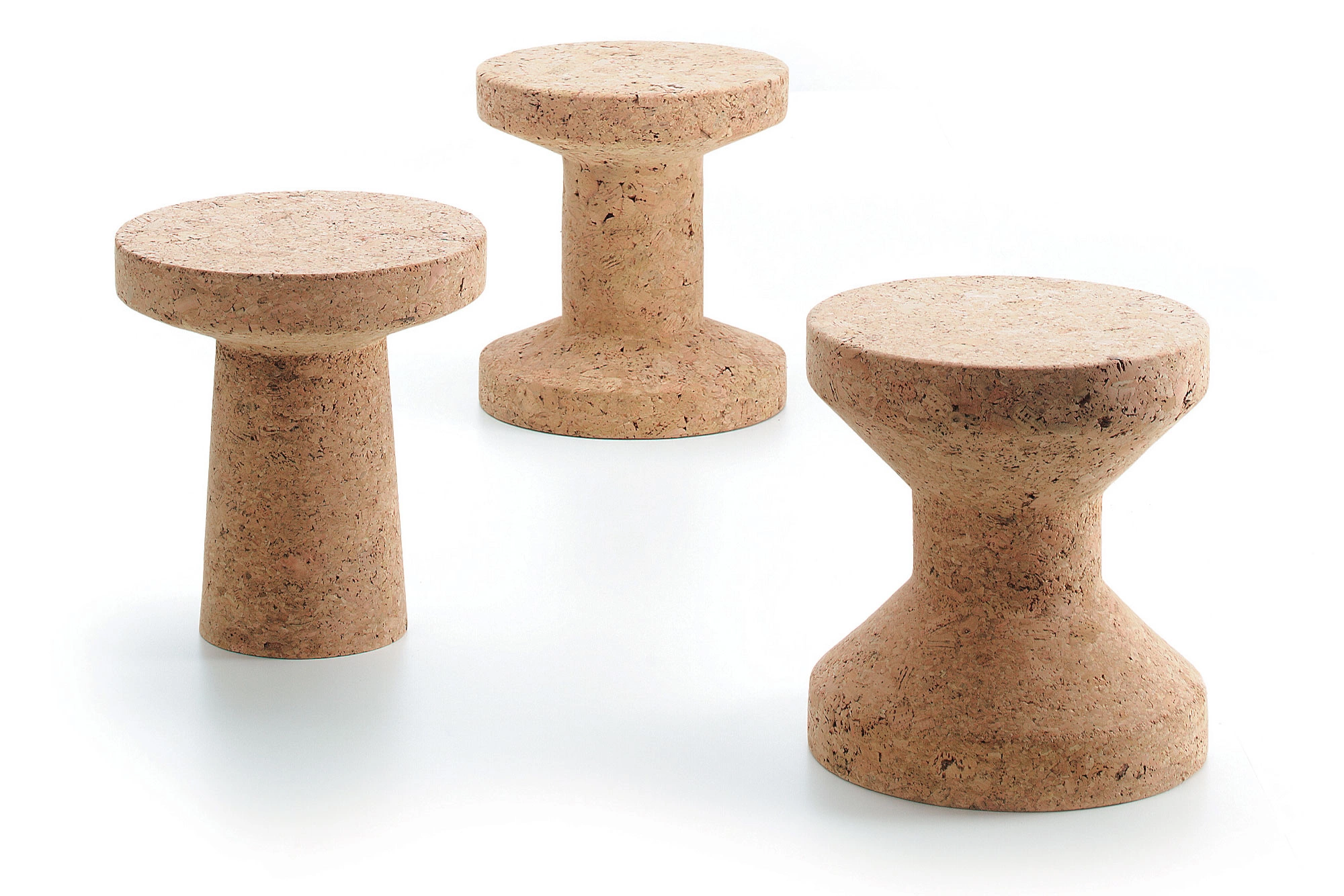 De robuste medlemmene av Cork Family står stødig, noe som gjør dem egnet for bruk som sidebord eller krakker. De drar nytte av de fordelaktige naturlige egenskapene til kork: relativt lette og ekstremt holdbare, de har også en fløyelsmyk overflate som er behagelig å ta på.