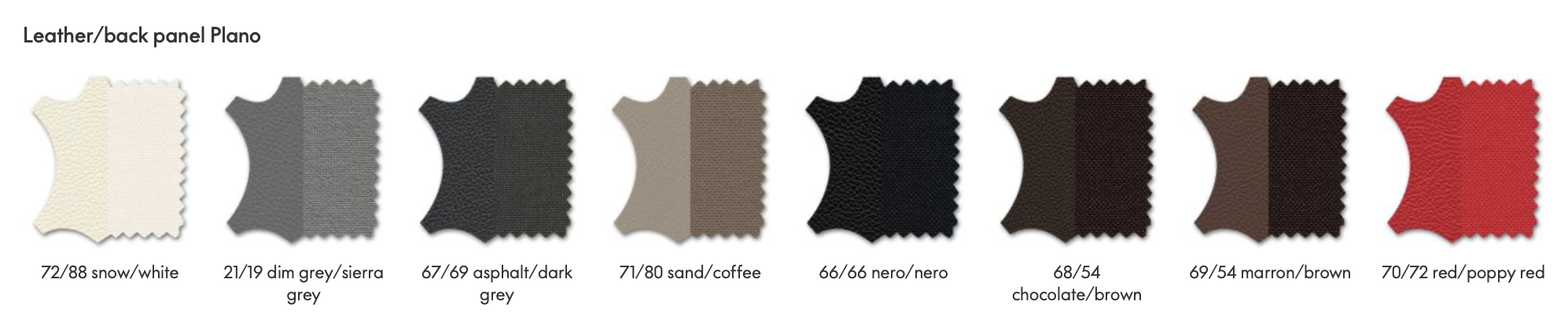 L20 lær foran (sete og rygg) og Plano stoff bak.
