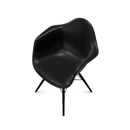 DAW-utgaven m/armlene har spisebordhøyde og tre-understell i Lønn og sorte stål-detaljer. Stolskallet fåes i en rekke delikate farger.