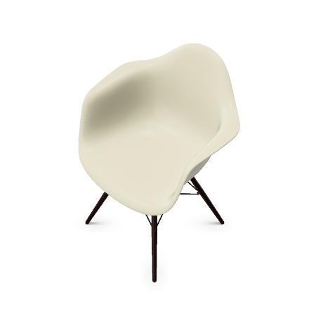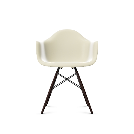 DAW-utgaven m/armlene har spisebordhøyde og tre-understell i Lønn og sorte stål-detaljer. Stolskallet fåes i en rekke delikate farger.