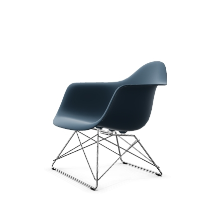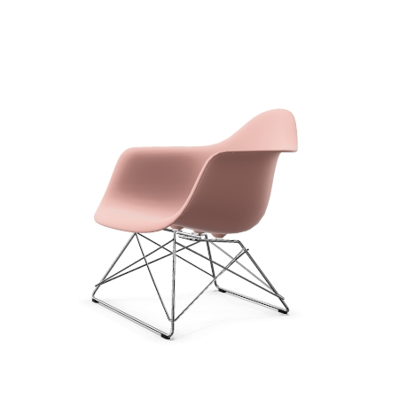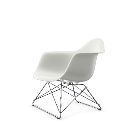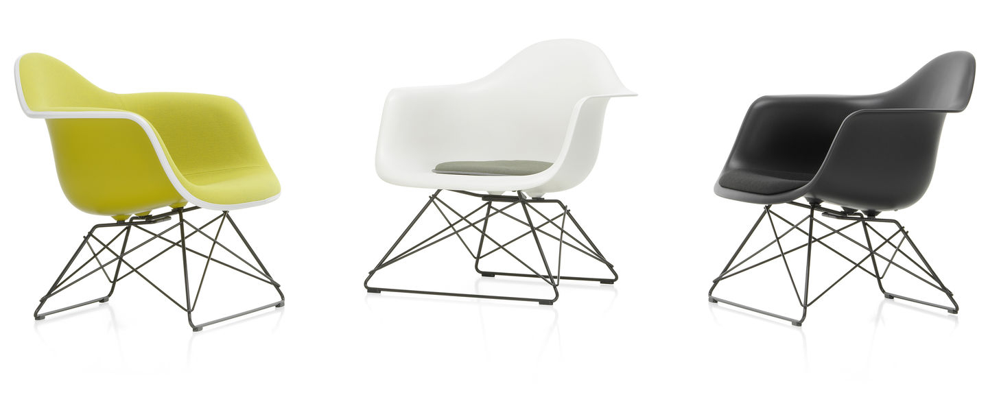 Plaststolene av Charles og Ray Eames er blant de viktigste designene i møbelhistorien. Etter å ha hatt sin første presentasjon i konkurransen «Low Cost Furniture Design» organisert av Museum of Modern Art i 1948, ble stolene lansert på markedet i 1950 i en lenestolsversjon (A-skall) og som en enklere sidestol (S- skall) – gjør dem til de aller første masseproduserte stolene i plast. Med debut av deres plaststoler, innførte Charles og Ray Eames en ny møbeltypologi som siden har spredt seg over hele verden: den multifunksjonelle stolen hvis skall kan knyttes sammen med en rekke forskjellige baser. Så tidlig som i 1950 presenterte de en rekke baser som aktiverte ulike sittestillinger, blant annet lav-slung LAR (Lounge Height Armchair Rod Base). LAR ser ut til å ha vært en av Charles og Rays favorittdesign: det kan sees i mange vintagebilder av det legendariske Eames House i Pacific Palisades – både innendørs og utendørs. Dette avslører også hvor lett stolen er, og hvor lett den kan flyttes rundt. Takket være sine kompakte dimensjoner, kan plaststolen LAR også brukes i mindre interiør, og det brede valget av farger for skallet, stoffet og basen kan koordineres med ulike stiler og innstillinger. Ståltrådsbasen, som oppnår maksimal stabilitet med minimumsmaterialer, har fått et sjarmerende kallenavn på kort tid på markedet som følge av sin uvanlige form: «Cat’s Cradle» – i forhold til barnas strengspill. På grunn av den klassiske lenestolens organiske form, er LAR et slående solo-stykke, men det kan også sammenkobles med mange typer sofaer for å skape en tiltalende kontrast. Spesielt i versjonen med full møbeltrekk, tilbyr LAR langvarig komfort, noe som gjør denne lenestolen til en beskjeden størrelse et utmerket sitteområde for ethvert oppholdsrom. Tilgjengelig fra november 2019.