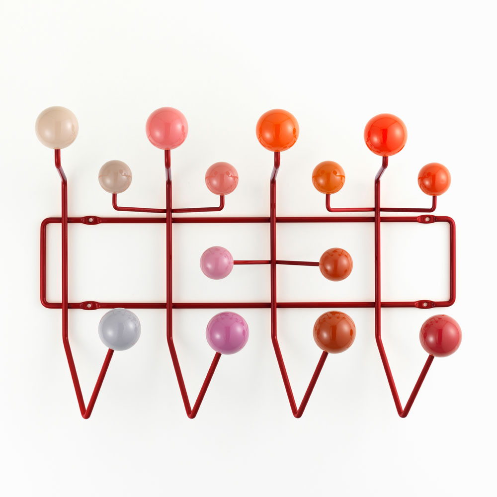 Hang It All – Ray Eames – Brukes i stedet for enkle kroker, er de fargerike tre baller av «Hang it all» coat rack sikte på å oppmuntre barna til å bokstavelig talt henge opp alle sine ting. Takket være jevn avstand mellom ballene, kan stativer monteres ved siden av hverandre for ekstra lagringsplass. Hang it all er ett muntert alternativ til kjedelig kleskroker – og ikke bare for barnas rom. Den opprinnelige farge sammensetningen av «Hang it all» ble unnfanget av Ray Eames. I feiringen av det som ville vært hennes 100-årsdag i desember 2012, Vitra og Eames Kontor utviklet tre nye versjoner av hengeren i friske nyanser av rødt, grønt og hvitt.
