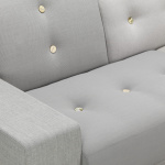 Knappene til Polder-sofaene, designet av Jongerius i en collage av farget plast, aluminium og lær, er en spesielt slående detalj. De gir ikke bare en attraktiv kontrast til de myke vevde stoffene, men lette også lett avmontering av polstrede deksler for rengjøring, takket være en enkel festeanordning.