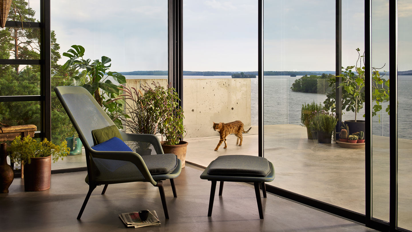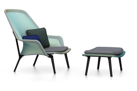 Vitra Slow lenestol & Ottoman Blue / Green Chocolate