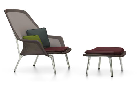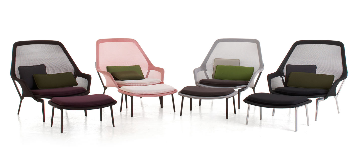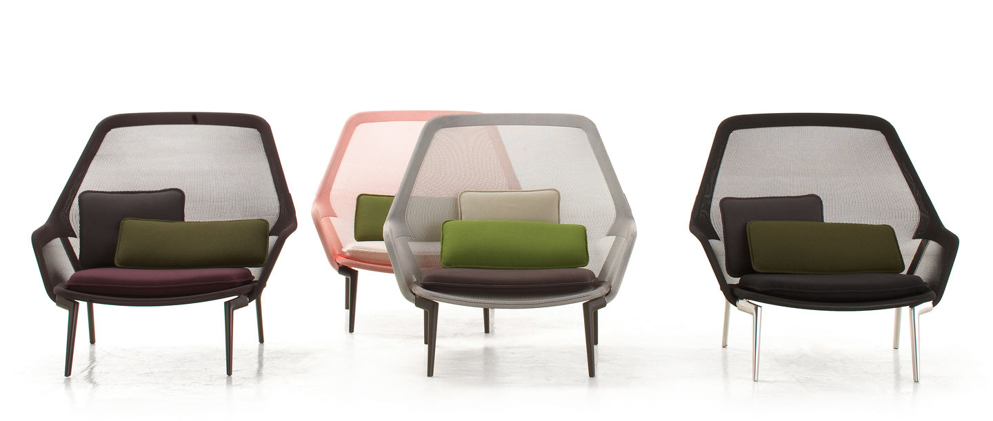 Vitra Slow chair utmerker seg med sin fantastiske sittekomfort laget i meget slitesterk netting og sprøytet i sjokoladefarget lakk eller polert metall.Stolen kommer i en rekke farger med matchende puter.