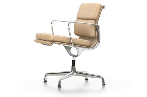 Den ikoniske og likevel underspillede utformingen av Charles og Ray Eames Soft Pad-stoler EA 205, 207 og 208 gjør dem til et ideelt valg for prestisjefylte møte- og konferanserom. Deres frodige polstring sikrer myk sittekomfort. Med et utvalg av to forskjellige typer lærdeksler i et stort utvalg av farger, kan kundene finne den rette versjonen for hvert interiør.