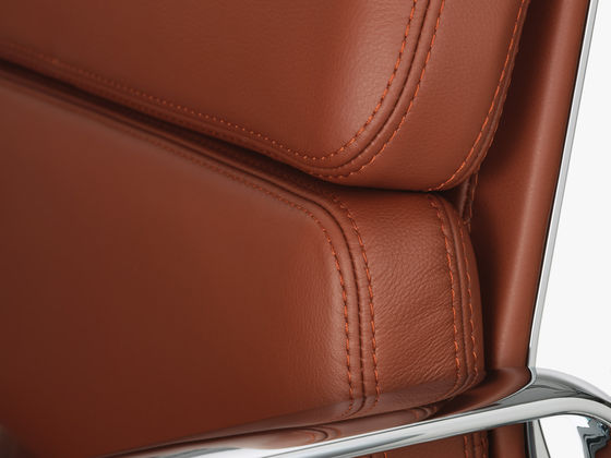 Den ikoniske og likevel underspillede utformingen av Charles og Ray Eames Soft Pad-stoler EA 205, 207 og 208 gjør dem til et ideelt valg for prestisjefylte møte- og konferanserom. Deres frodige polstring sikrer myk sittekomfort. Med et utvalg av to forskjellige typer lærdeksler i et stort utvalg av farger, kan kundene finne den rette versjonen for hvert interiør.