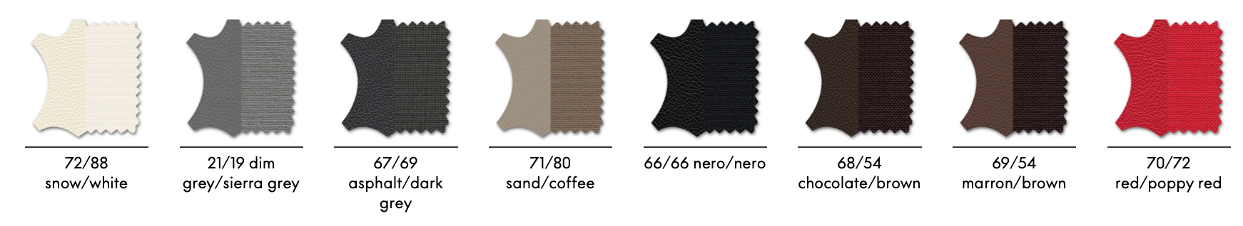 Basen: Femstjerners base i støpt aluminium, med en polert eller forkrommet finish eller pulverlakkert i dyp svart. Utstyrt med harde hjul for teppe eller myke hjul for harde gulv. Castor deksler i svart for polert og sort pulverlakkert base, med forkrommet finish for krom base.
