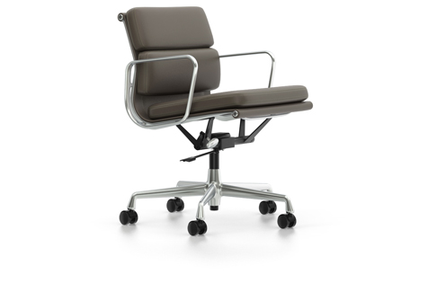 Vitra Soft Pad Chair EA 217 Umbra Grå lær polert stål