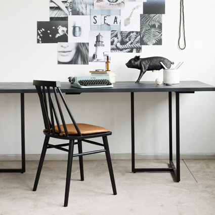 DAW-utgaven m/armlene har spisebordhøyde og tre-understell i Lønn og sorte stål-detaljer. Stolskallet fåes i en rekke delikate farger.