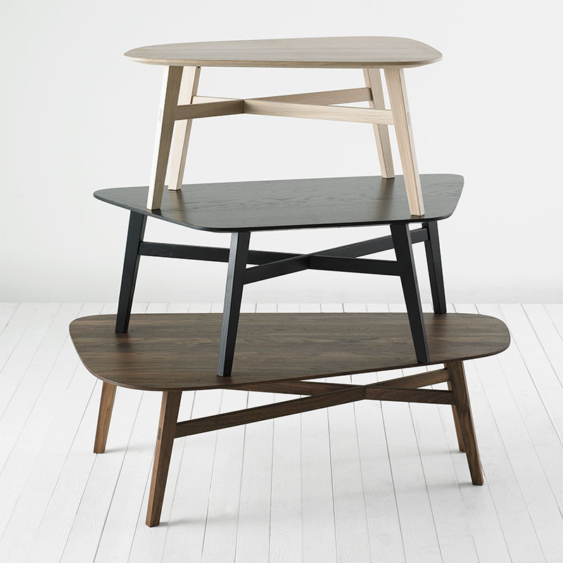 Bordet er tilgjengelig i skog: eik, valnøtt og svartved, og det er mulighet for pålegg i enten massivt tre eller laminat.