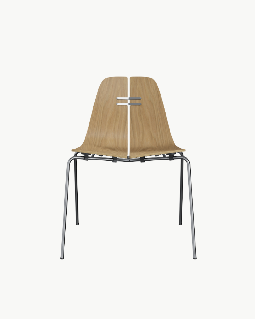 Den karakteristiske silhuetten – et sømløst skall som består av sete og rygg i ett stykke – ble skapt ved hjelp av en revolusjonerende teknikk med ni lag finér og to lag bomull, presset sammen under damp. Resultatet er en stol med fleksibilitet, styrke og en usedvanlig slank profil som fremdeles føles moderne over 60 år etter lanseringen.