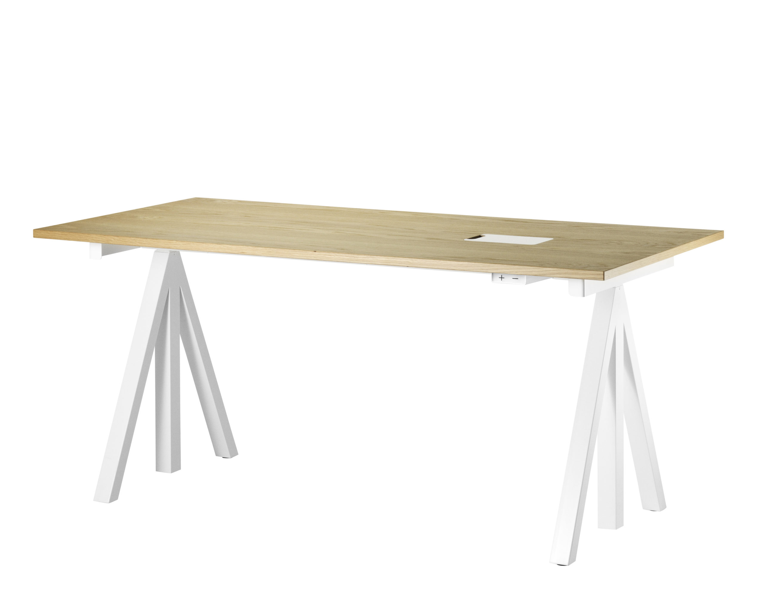 Med sitt unike design gjør skrivebordet fra String Works™ det mulig å lage en fleksibel arbeidsplass. Skrivebordet består av et fast understell og en bordplate. Basen på understellet gjør det mulig å justere høyden med 1 cm. Skrivebordet kan plasseres hvor som helst, og i løpet av bare et øyeblikk har du laget deg et fullverdig kontor.